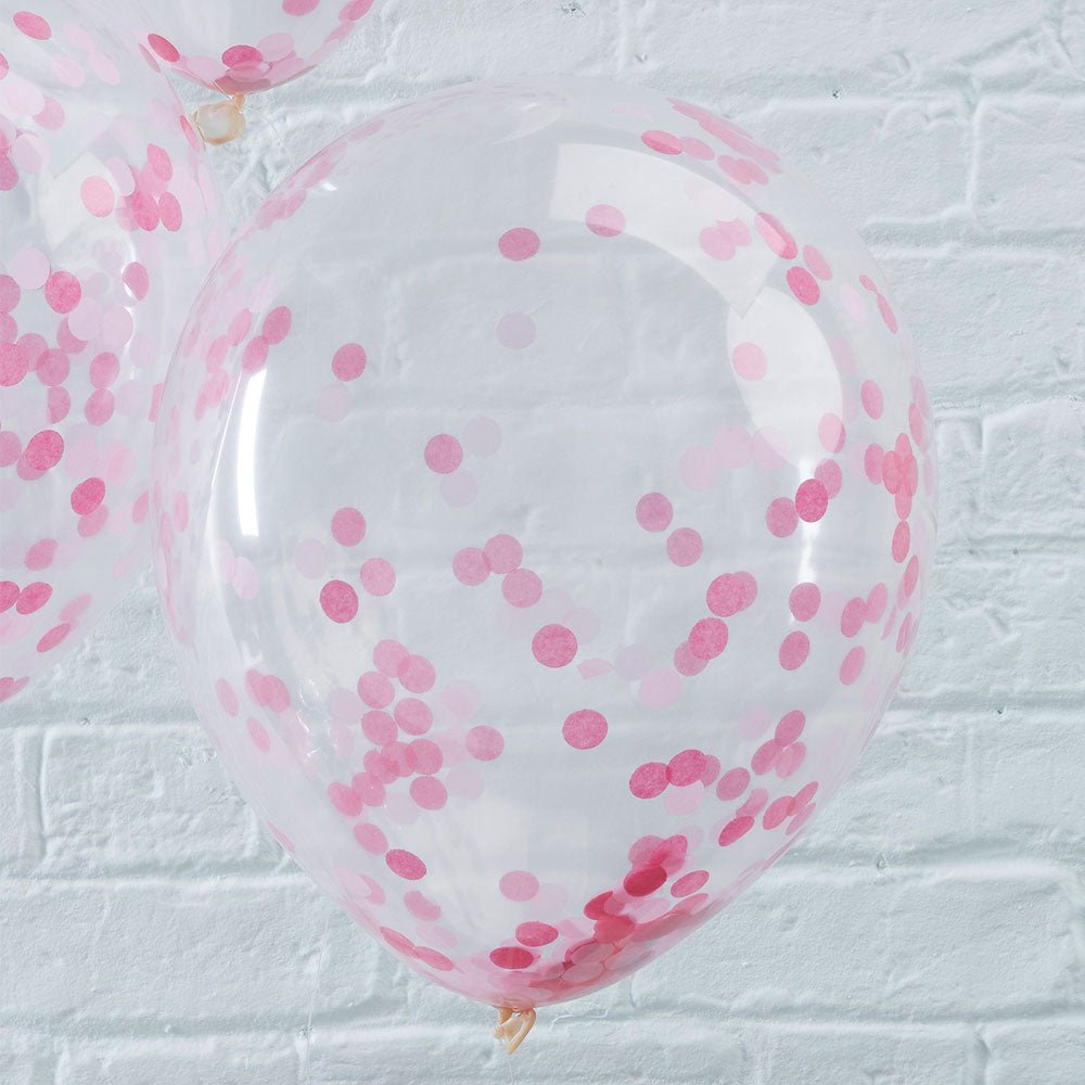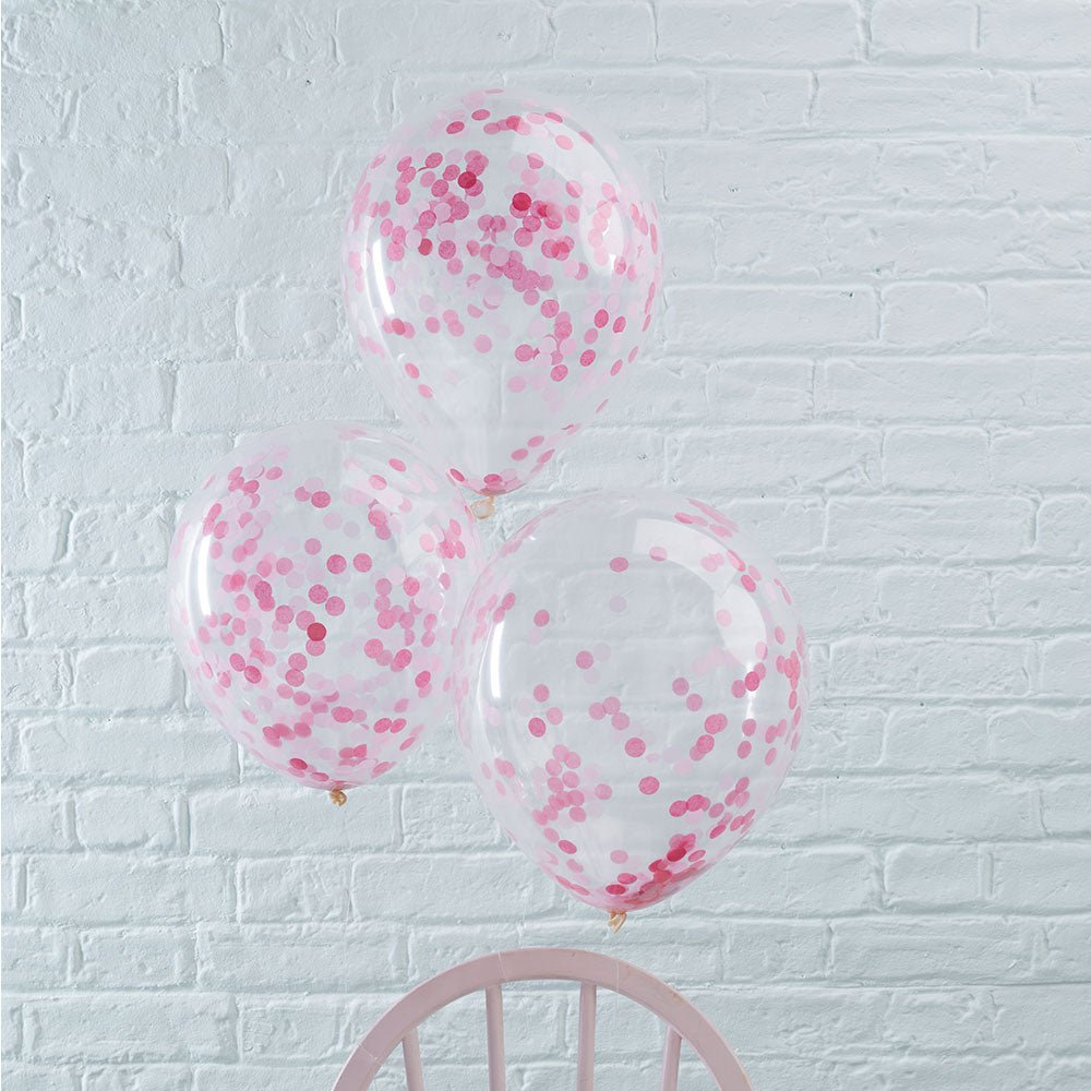 - بالونات لاتكس مع قطع ملونة باللون الوردي.