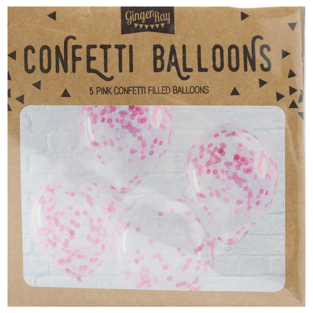 عبوة من خمس بالونات وردية من الكونفيتي تتضمن خمس بالونات لاتكس شفافة مملوءة بقصاصات وردية. افرك البالون بيدك أو بقطعة قماش مع لفّه لالتصاق القصاصات بجوانب البالون.