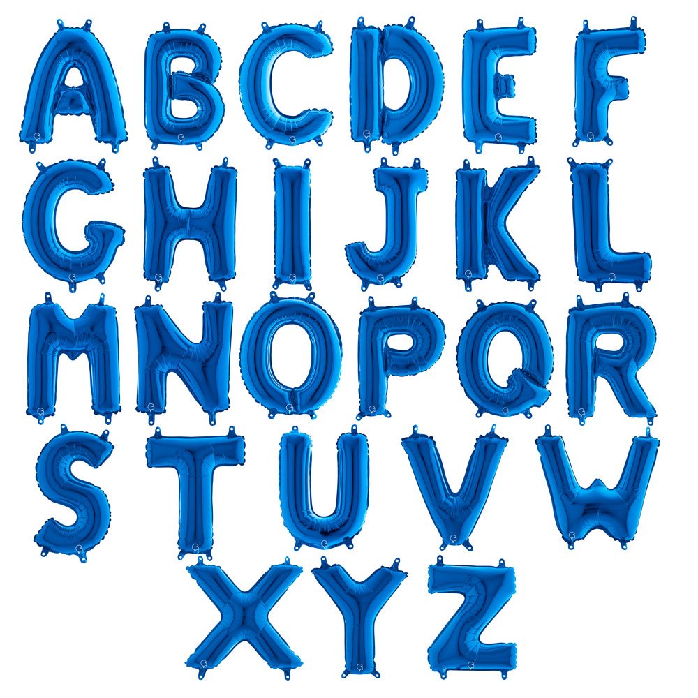 Letter Balloon Blue Mini includes a blue foil balloon in the shape of a letter. The balloons are filled with air using the included straw and are about 35 cm in size. Available in letters A-Z.