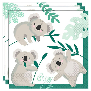 Koala Party Napkins include a 16-pack of paper napkins with sweet koala motifs. The napkins have two layers and measure 33 x 33 cm unfolded.
