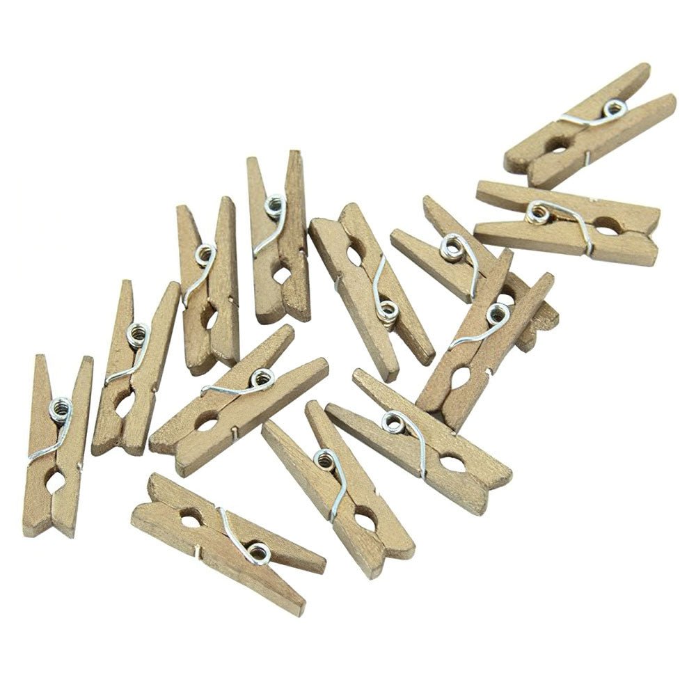 Mini Clothespins Gold includes a 24-pack of gold mini wooden clothespins that are about 2.5 cm long.