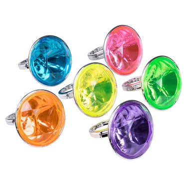 Fine plastic toy rings with large and glossy stones that make perfect little toys for all children who want to dress up with bling bling rings and are excellent as party favors for the party bag for an even more festive party, celebration, and children's party, super fine plastic rings with jewels for a really fun party.