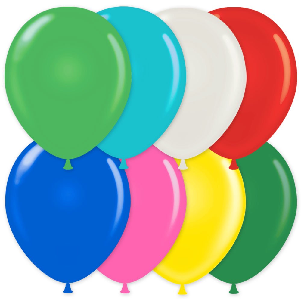 Mixed Color Balloons include round balloons made of natural rubber latex in different colors. The multi-colored balloons are also suitable for helium, which is available for purchase.