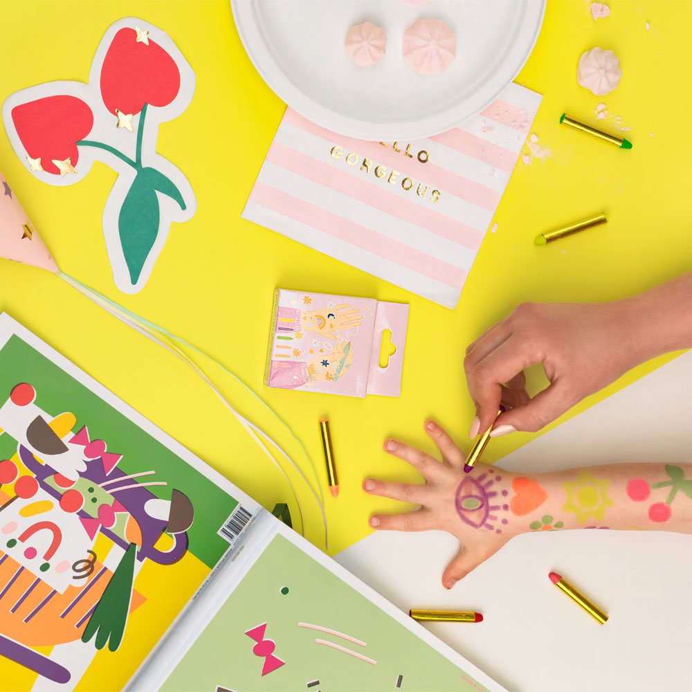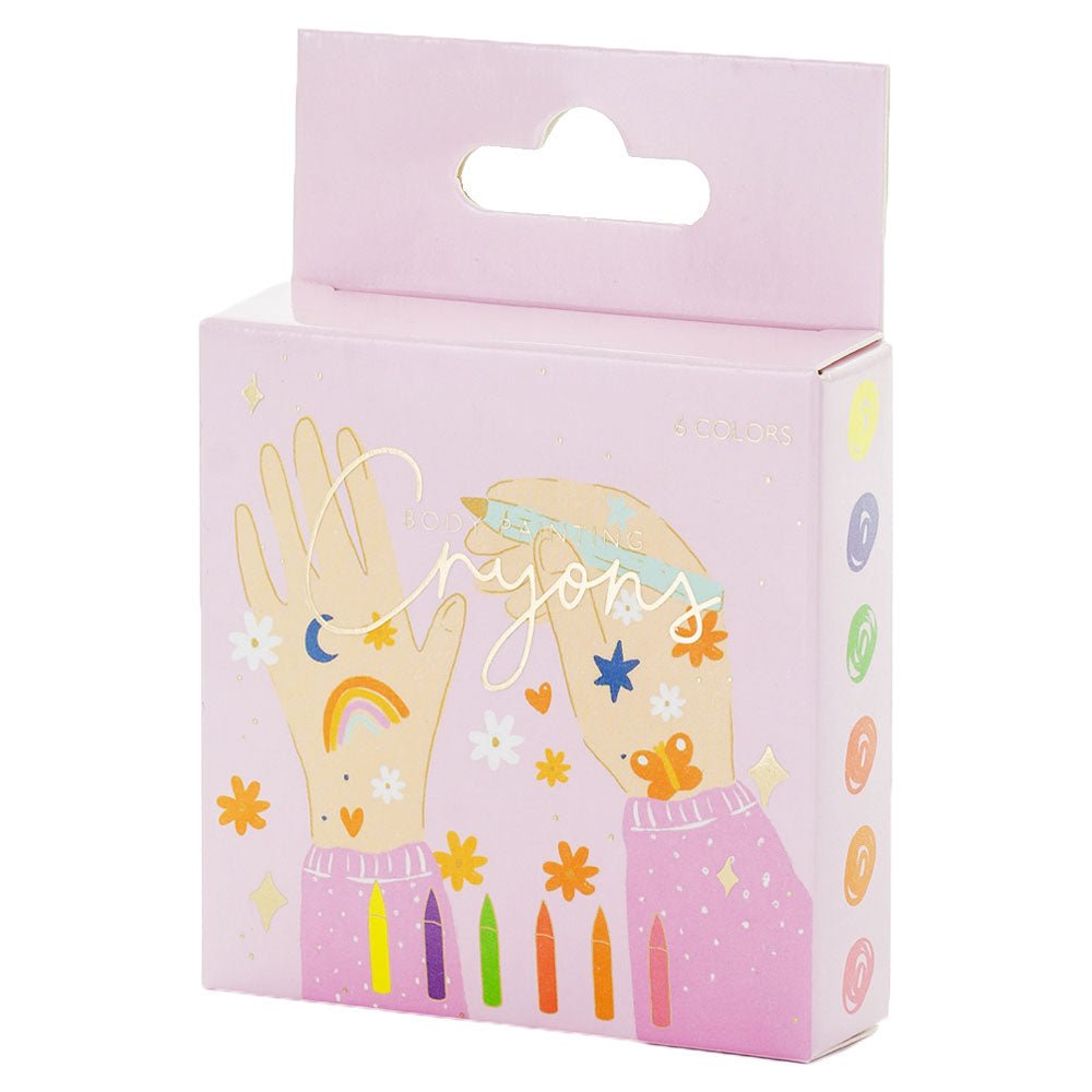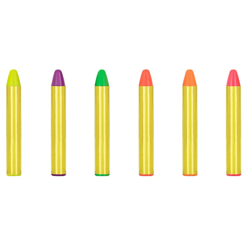 Face Crayons 6-pack includes 6 face crayons in the colors pink, orange, red, green, purple, and yellow. The crayons are about 5.5 cm long and suitable for both children and adults.