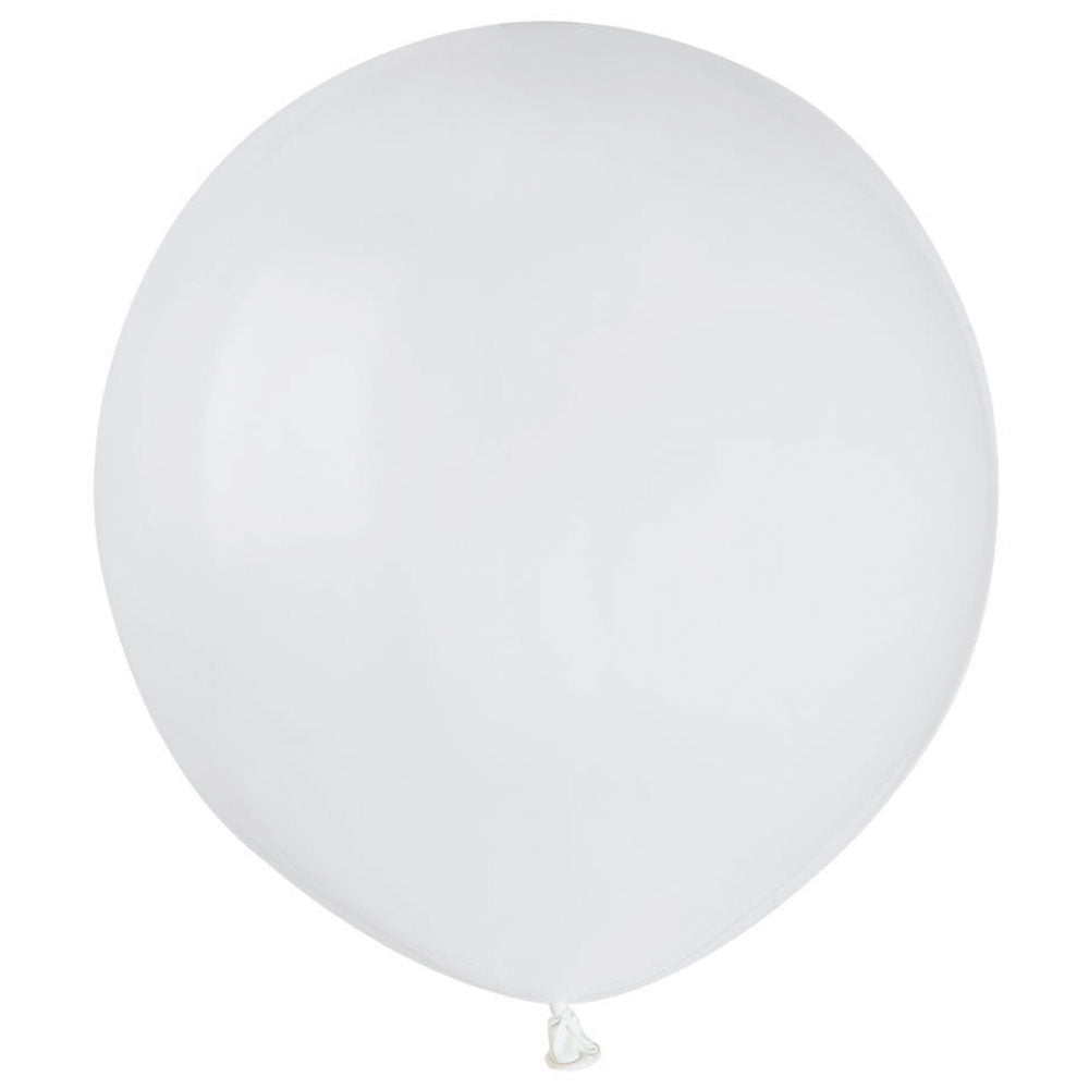 Large Round White Balloons include a package with several large round white balloons. These balloons are made of natural rubber latex and can be filled with air or helium. One such large balloon requires helium equivalent to 5 normal-sized latex balloons.