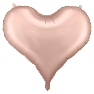 Large Heart-Shaped Balloon Satin Rose Gold includes a rose gold heart-shaped foil balloon with a matte satin effect. The balloon is approximately 74 x 64.5 cm in size and comes with a convenient straw for easy inflation. Can be filled with air or helium.