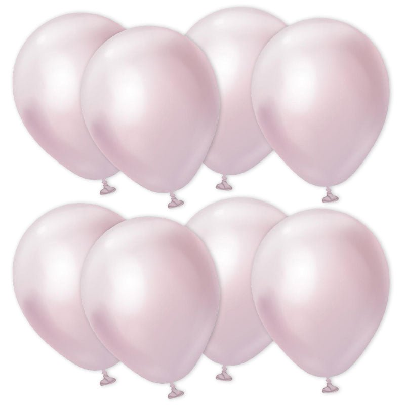 Mini Balloons Chrome Pink Gold include small, gold-pink latex balloons with a chrome effect. The balloons are filled with air and become about 13 cm in size.