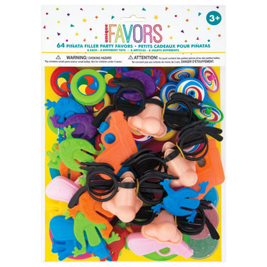 Party Toys Mix 64-pack includes a set of 64 party toys in various colors.