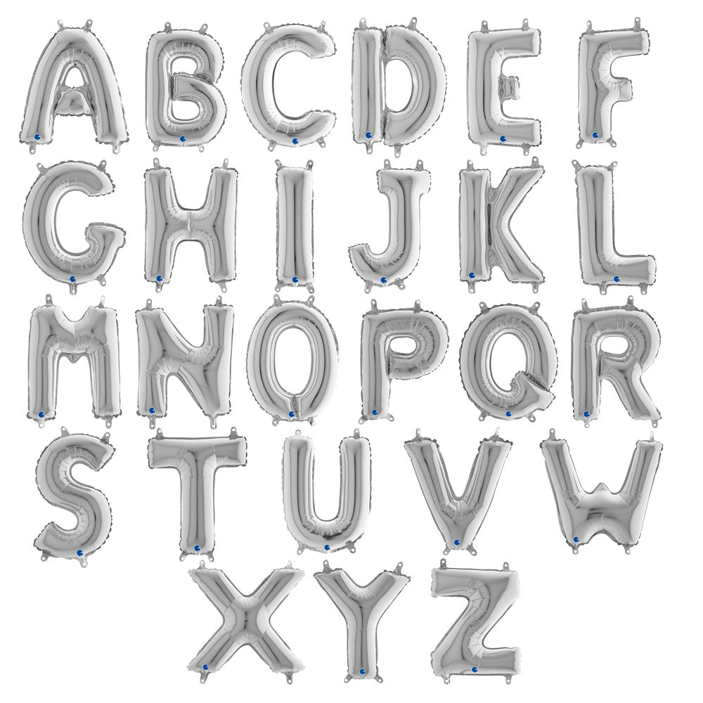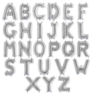 Letter Balloon Mini Silver includes a 35 cm large, silver foil balloon in the shape of a letter. The balloon is filled with air. Choose between the letters A-Z.