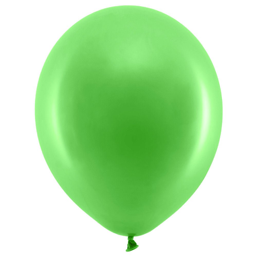 Rainbow Latex Balloons Pastel Green includes 10 pastel green latex balloons measuring approximately 30 cm in diameter. Inflate the balloons with air or helium.
