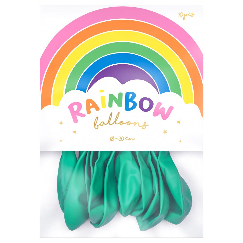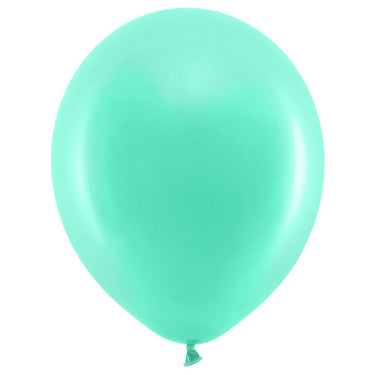Rainbow Latex Balloons Pastel Mint Green includes 10 pastel mint green latex balloons measuring approximately 30 cm in diameter. Inflate the balloons with air or helium.