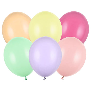 Small Latex Balloons Pastel Colors 50-pack includes 50 latex balloons in various pastel colors. The balloons can be filled with air or helium and are about 23 cm in size.