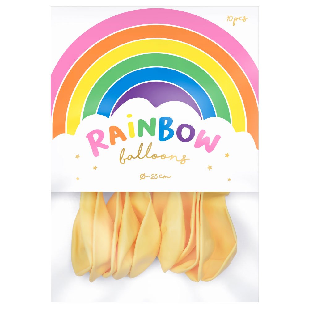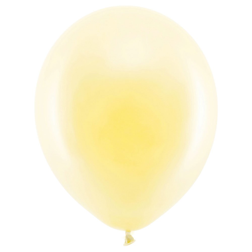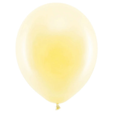 Rainbow Small Pastel Ivory Latex Balloons include 10 pastel latex balloons in ivory white. The balloons measure approximately 23 cm in diameter and can be filled with air or helium.