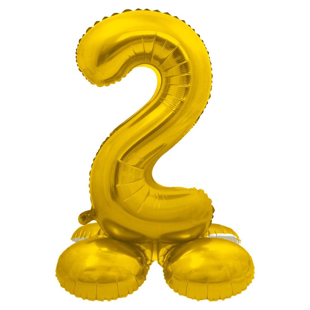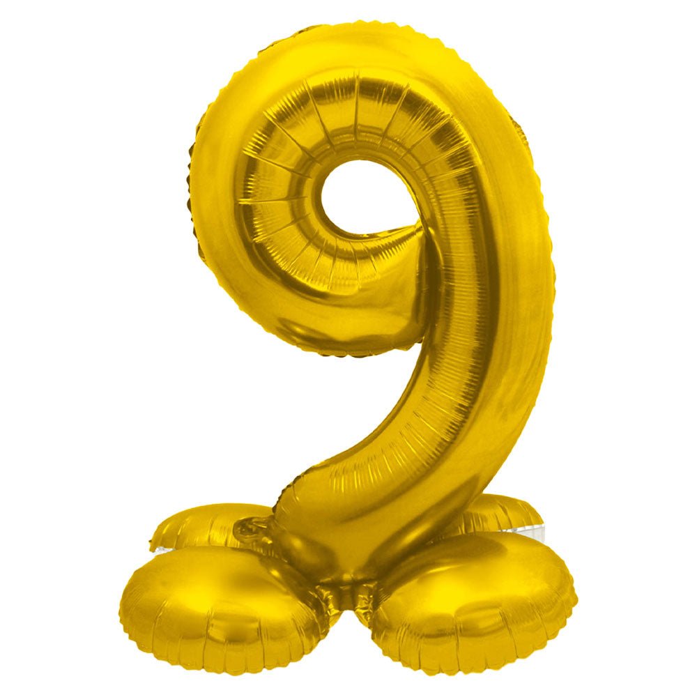 Standing Number Balloon Gold consists of a standing number balloon in gold. The balloon is made of foil, filled with air, and is about 72 cm in size. Choose between numbers 0-9.